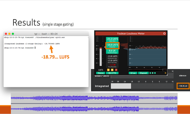 'seeLoudness' offers a simple, fast solution for measuring the integrated, K-weighted loudness (Integrated LUFS) of a stereo audio file. This command-line utility written in C analyzes 16-bit/48kHz stereo WAV files at around 14x real-time, is fully compliant to the ITU-R BS.1770-4 recommendation, and offers accuracy comparable to commercially available, industry-standard metering solutions.