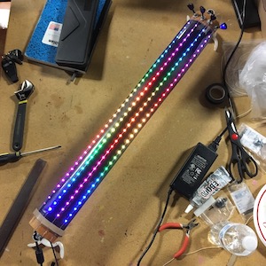 My duties included electrical and software work. I designed and implemented a system including two PJRC Teensy microcontroller boards: one responsible for scanning for user input on the resistive touchscreen, then passing this information to the other for the core operation and sound generation of the instrument. I also worked with another team member to add a third microcontroller responsible for receiving parameter updates from a mobile app and passing them to the primary board for handling.