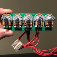 "The Wavebender is a unique guitar pedal based on a concept known as “wavefolding” borrowed from modular synthesis. Whereas a traditional fuzz pedal achieves its distortion by ‘chopping off’ the peaks of a signal, the Wavebender takes these peaks and inverts them. The core ‘wavefolding’ stage is accompanied by multiple stages of gain and filtering, and five control knobs offer deep manipulation of the sound. The result is a unique distortion that can be dialed in from a mild saturation to a harsh, 'torn-speaker' fuzz."